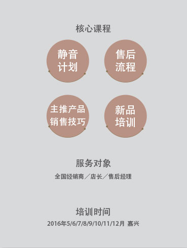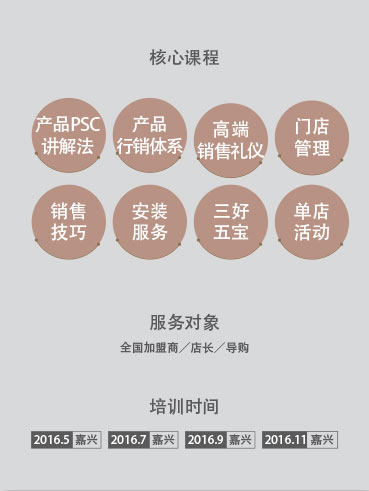 2013年,美爾凱特在行業內率先成立商學院,結合市場化的運作模式,采用定期開課、分批集中式培訓的教學模式,以終端實用性的課題為教學方向,注重終端營銷推廣、店面管理以及銷售技巧等培訓,致力于為美爾凱特經銷商提供實用實戰型終端發展方法,塑造專業化、職業化營銷團隊,提升終端核心競爭力,真正打造出一所美爾凱特獨有的終端營銷“黃埔軍校”。